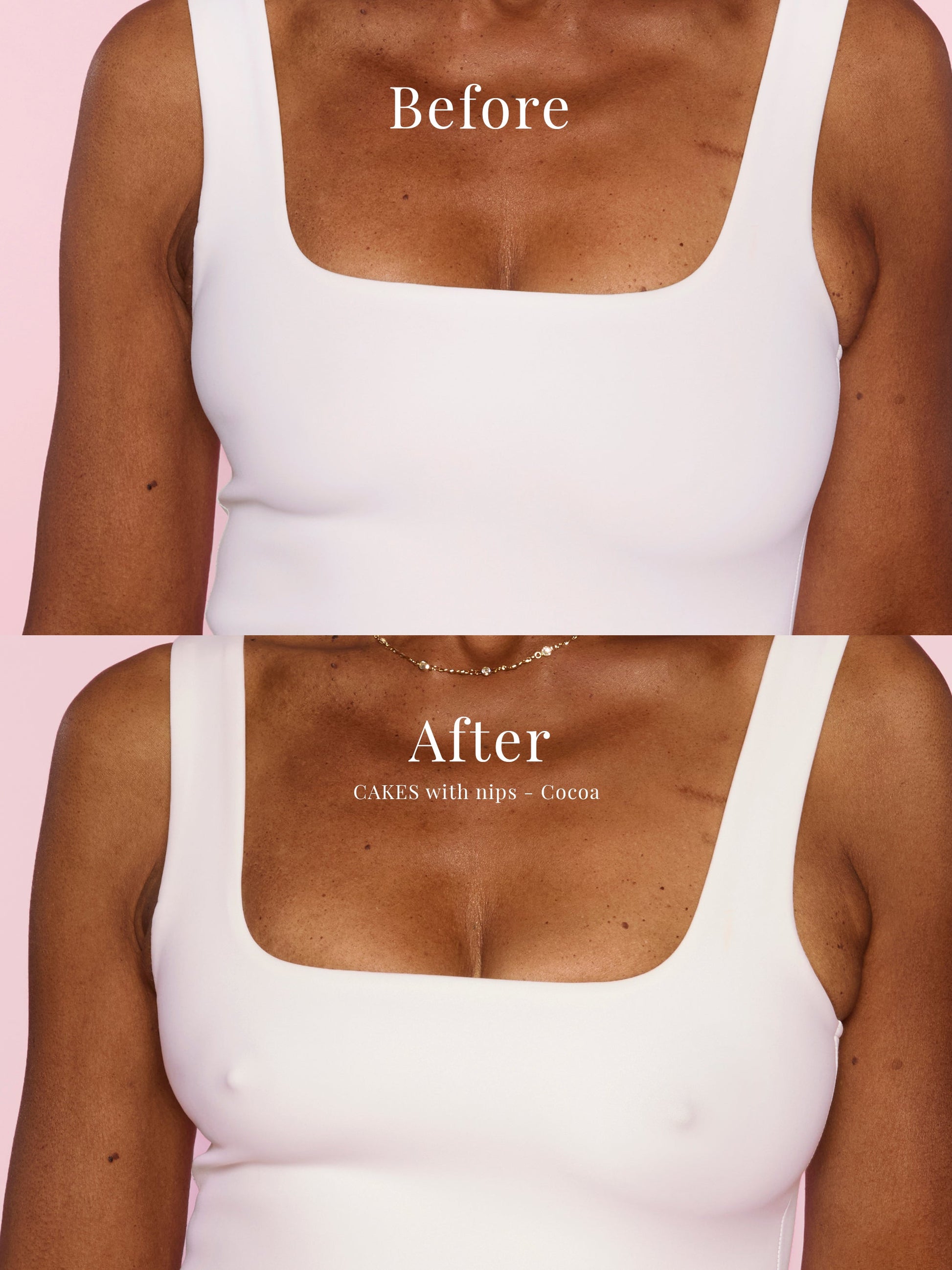 "I love my CAKES! I now go braless daily and find that these are perfect under my tops, workout bras and swim suits. LIFE SAVER!"